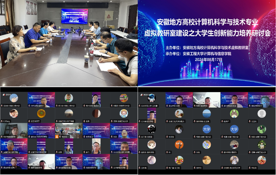 为深入贯彻党的二十届三中全会精神,统筹推进科技、教育与人才战略支撑工作,着力提升计算机类本科生人才培养质量及其创新创业能力,8月17日,安徽工程大学beat365亚洲体育在线官网组织举办了“安徽地方高校计算机科学与技术虚拟教研室建设之大学生创新能力培养研讨会”。来自安徽农业大学、淮北师范大学、beat365亚洲体育在线官网、合肥师范学院、宿州学院、滁州学院、黄山学院、皖西学院、池州学院、铜陵学院、巢湖学院等高校计算机学院负责人、专业负责人或骨干教师共50多位参加了此次研讨会,会议由安徽工程大学计算机科学与工程系副主任刘进主持。beat365亚洲体育在线官网副院长吴海峰和数字媒体技术专业教师艾列富应邀参加。