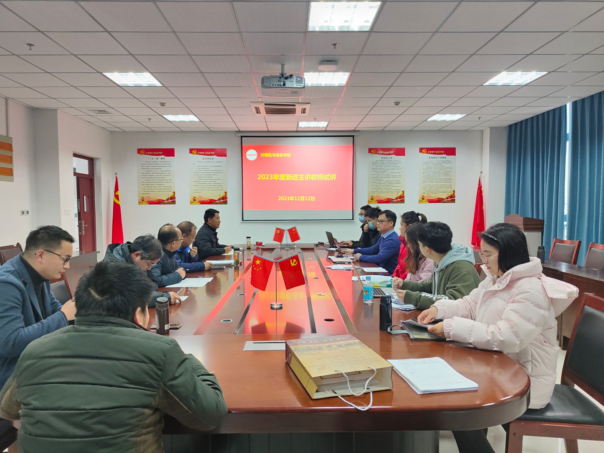 1212日学院在计算机楼L318开展了2023年度主讲教师教学能力考核活动。本次活动由副院长吴海峰主持,邀请教学督导员王一宾、教学工作委员会委员张春生、汪文明、艾列富、江克勤担任评委,旨在评估和提高新进教师的教学能力。